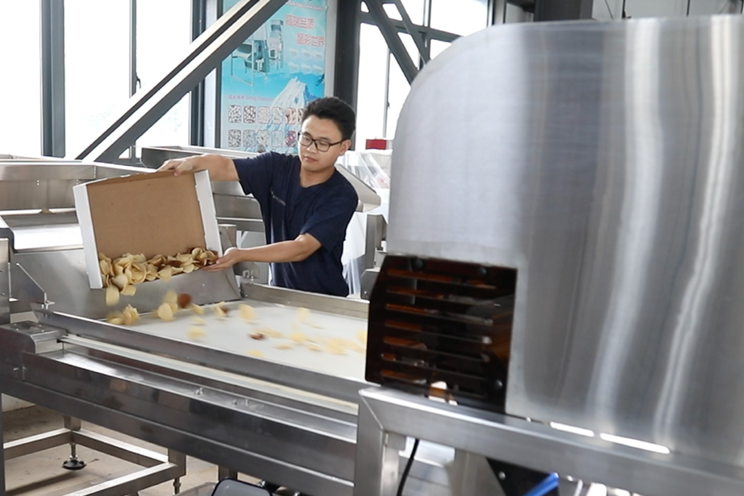 For potato chips, the sorter identifies burnt or discolored slices, uneven cuts, and foreign materials before frying or packaging. This prevents oil absorption caused by low-quality slices, reduces rework, and ensures a clean, uniform finished product.